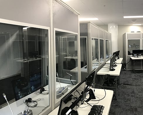 Our Interpreter booths can be set up indoors or outdoors, and can be placed onsite within veiw of the speakers, or remote to the event (with a video stream).