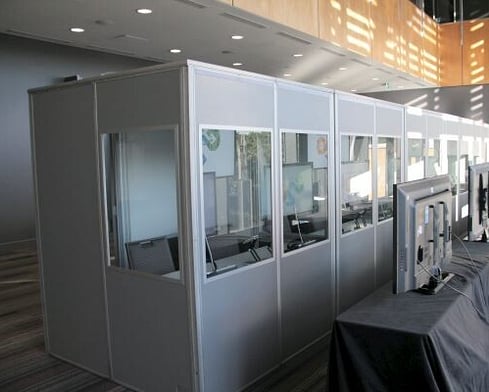 - These booths are always supplied with fans in the roof that provide the required amount of air circulation. Interpreters love our sound proof booths!